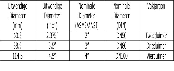 De nominale diameter is een niet zichtbare maat en wordt ook wel in metrische getallen aangegeven (DN).